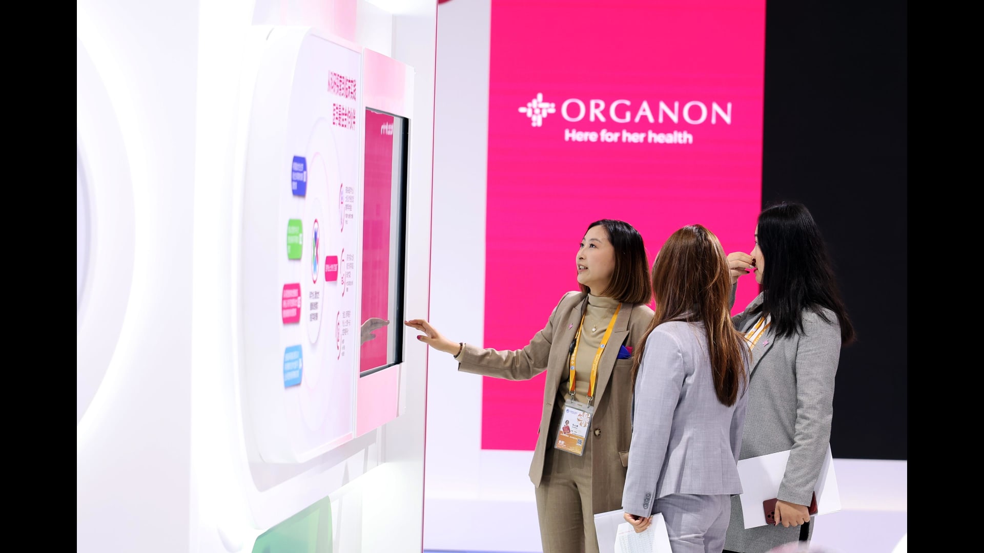 SHANGHAI, CHINA – NOVEMBER 05: Folks discuss over with the gross sales save of living of Organon all the design by the seventh China International Import Expo (CIIE) on the National Exhibition and Convention Center (Shanghai) on November 5, 2024 in Shanghai, China. The seventh China International Import Expo (CIIE) kicked off in Shanghai on November 5. (Photo by Tang Yanjun/China Recordsdata Provider/VCG via Getty Photos)